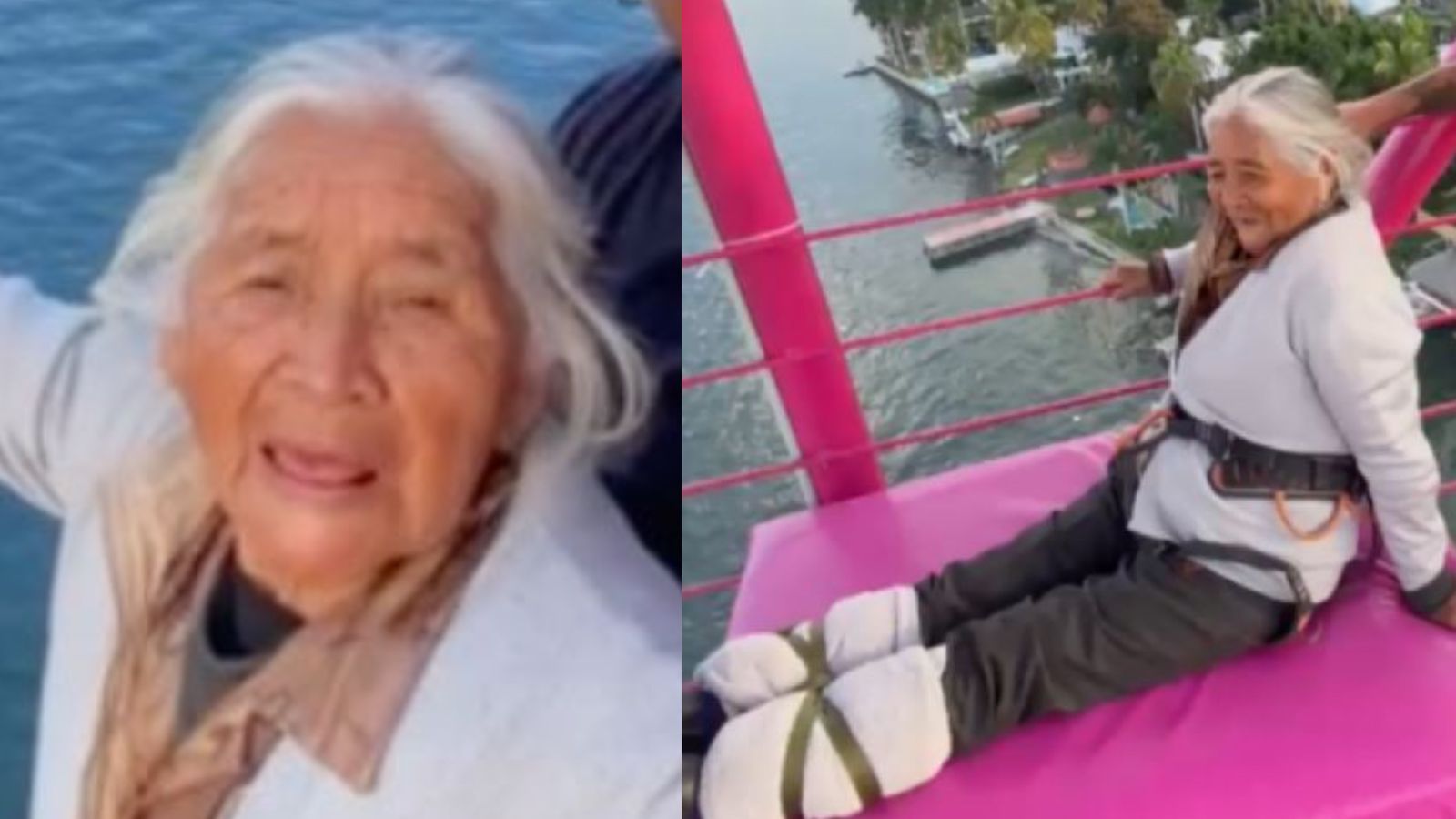 En la víspera de Navidad, Francisca, una abuelita mexicana, se convirtió en sensación en redes sociales tras realizar un intrépido salto en bungee desde 60 metros de altura en el lago de Tequesquitengo, Morelos.