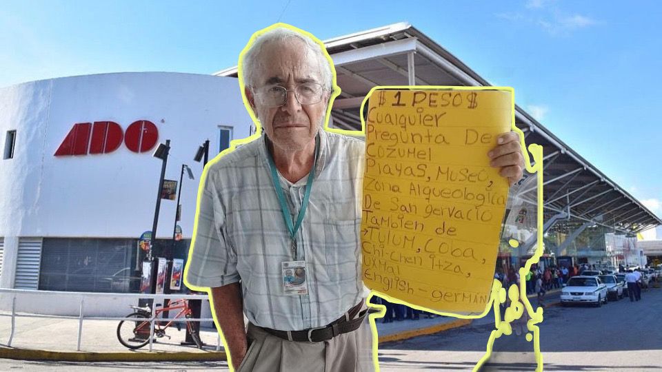Abuelito resuelve dudas turísticas por un peso en Cancún