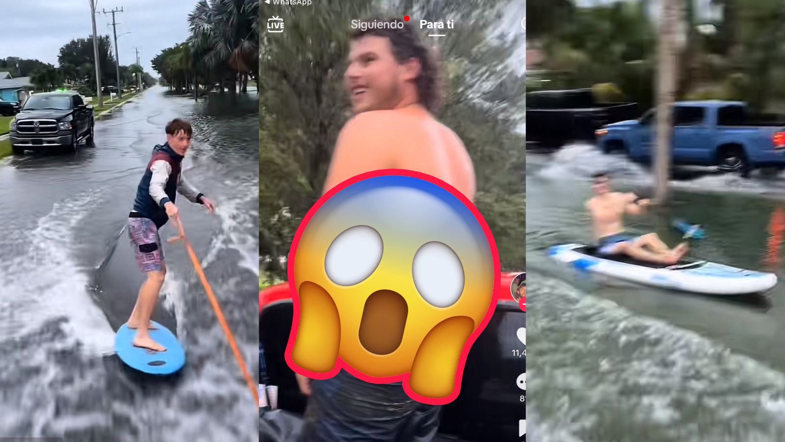 El video de los jóvenes de este momento, que apenas dura 27 segundos, fue difundido en TikTok el 9 de octubre por el usuario @chad113524. En la grabación de los jóvenes, que rápidamente alcanzó más de 81 mil visualizaciones y 300 compartidos, se observa a un hombre realizando esquí acuático en una avenida anegada, remolcado por una camioneta.